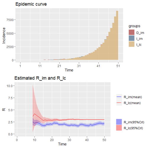 我们区分了中国湖北之外的数据中的输入、输入感染、本地感染三种病人,用发展了的方法做了有效再生数的计算。顺便,注意结果相差非常大。