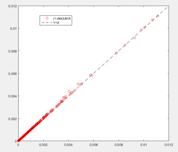 IOFactor的定义是在投入产出矩阵[math]\displaystyle{ A }[/math]中去掉第[math]\displaystyle{ k }[/math]行和第[math]\displaystyle{ k }[/math]列得到[math]\displaystyle{ A^{\left(-k\right)} }[/math],然后计算本征值和本征向量。每次重新开始计算本征值和本征向量比较耗资源。另外,还想从理论上看一下这个因子和PageRank等其他广义投入产出分析的指标的关系。于是,我们尝试了微扰计算。