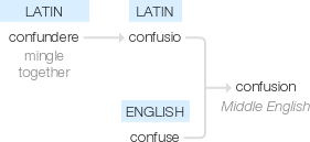 Middle English: from Latin confusio(n- ), from the verb confundere ‘mingle together’ (see confuse).