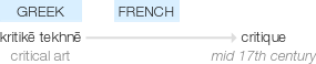 mid 17th century (as a noun): from French, based on Greek kritikē tekhnē ‘critical art’.