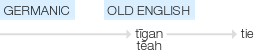 Old English tīgan (verb), tēah (noun), of Germanic origin.