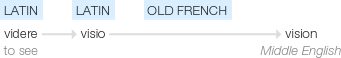 Middle English (denoting a supernatural apparition): via Old French from Latin visio(n- ), from videre ‘to see’.